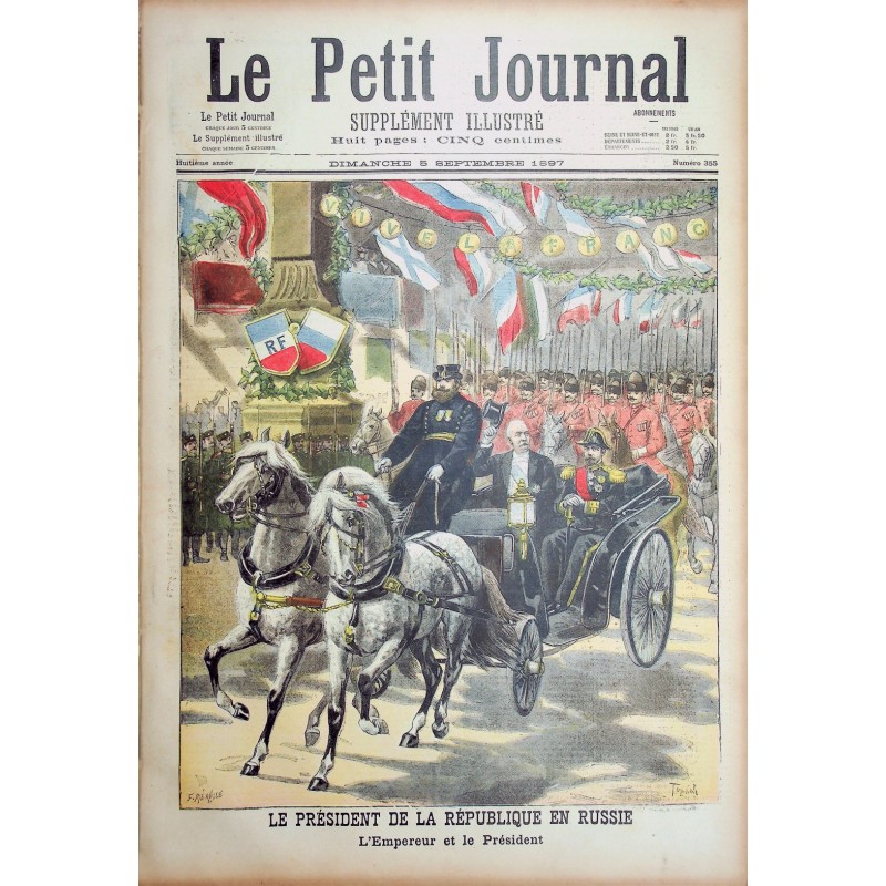Le Petit Journal n° 355 de 1897 : Le président de la République en Russie, l'Empereur et le Président & Arrivée à Peterhof