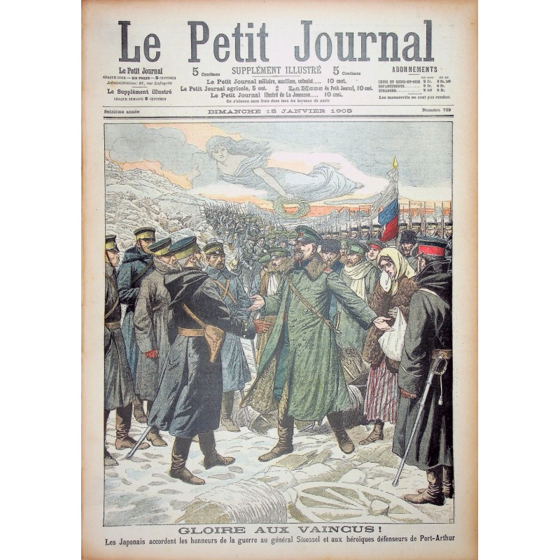 Le Petit Journal n° 739 de 1905 : Gloire aux vaincus, les japonais accordent... - Maroc, caravane d'Européens rentrant à Fez