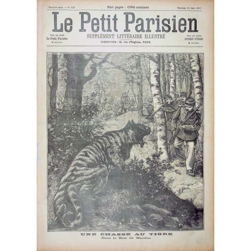 Le Petit Parisien n° 436 de 1897 : Une chasse au tigre... - Exposition d'horticulture. Le concours de bouquets à la main
