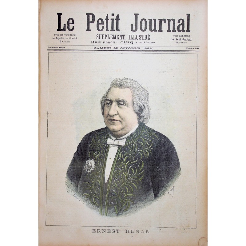 Le Petit Journal n° 100 de 1892 : Ernest Renan - La rentrée des classes - autrefois, aujourd'hui