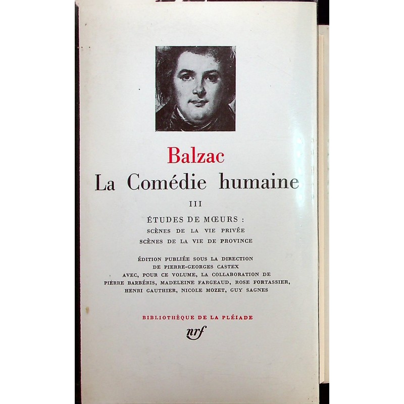La Pléiade N°30 : Balzac Honore de - la comédie humaine - Tome 3