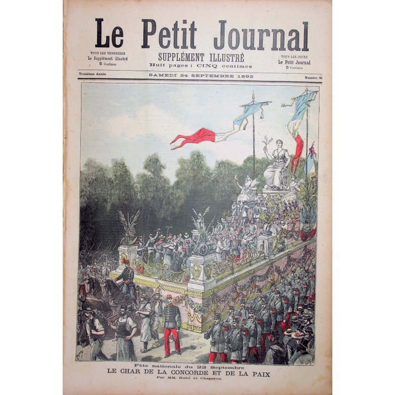 Le Petit Journal n° 96 de 1892 : Fête nationale du 22 septembre, char de la concorde - char du triomphe