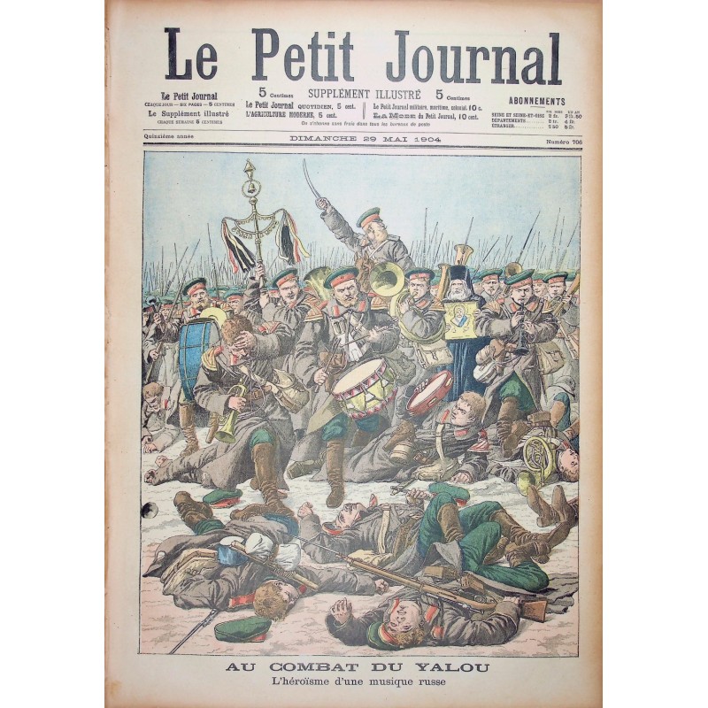 Le Petit Journal n° 706 de 1904 : Au combat du Yalou. L'héroïsme d'une musique russe - La réquisition des chevaux