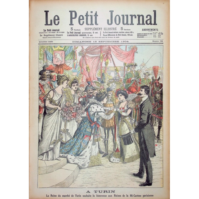 Le Petit Journal n° 722 de 1904 : A Turin, La Reine du marché de Turin.. - Croiseur cuirassé 'Jeanne-d'Arc" prend son corps mort