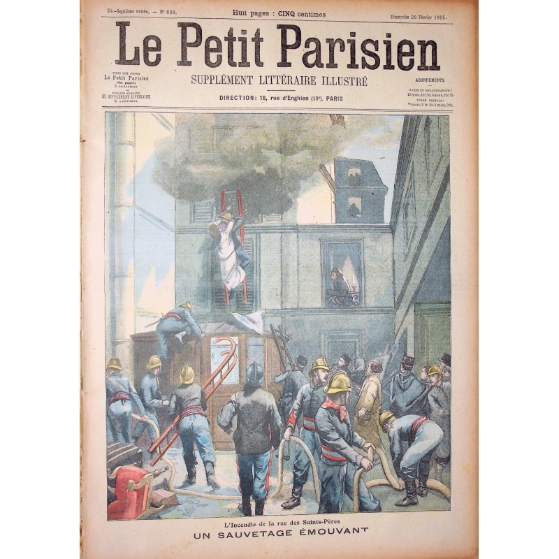 Le Petit Parisien n° 838 de 1905 : Incendie rue des Saints-Pères - Le croiseur "Sully" échoué sur un rocher dans la baie d'Along