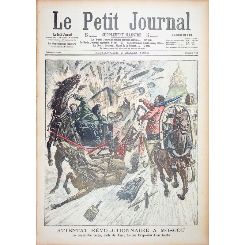 - Attentat révolutionnaire à Moscou. Le Grand-Duc Serge, oncle du Tsar, tué par l'explosion d'une bombe