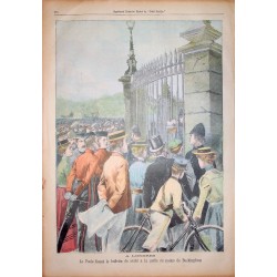 - A Londres. La foule lisant le bulletin de santé à la grille du palais de Buckingham