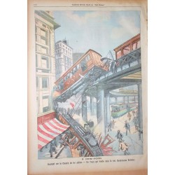 - A New-York - Accident sur le chemin de fer aérien, un trian qui tombe dans la rue. Nombreuses victimes